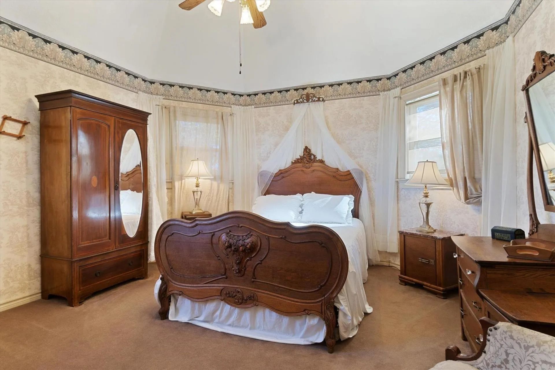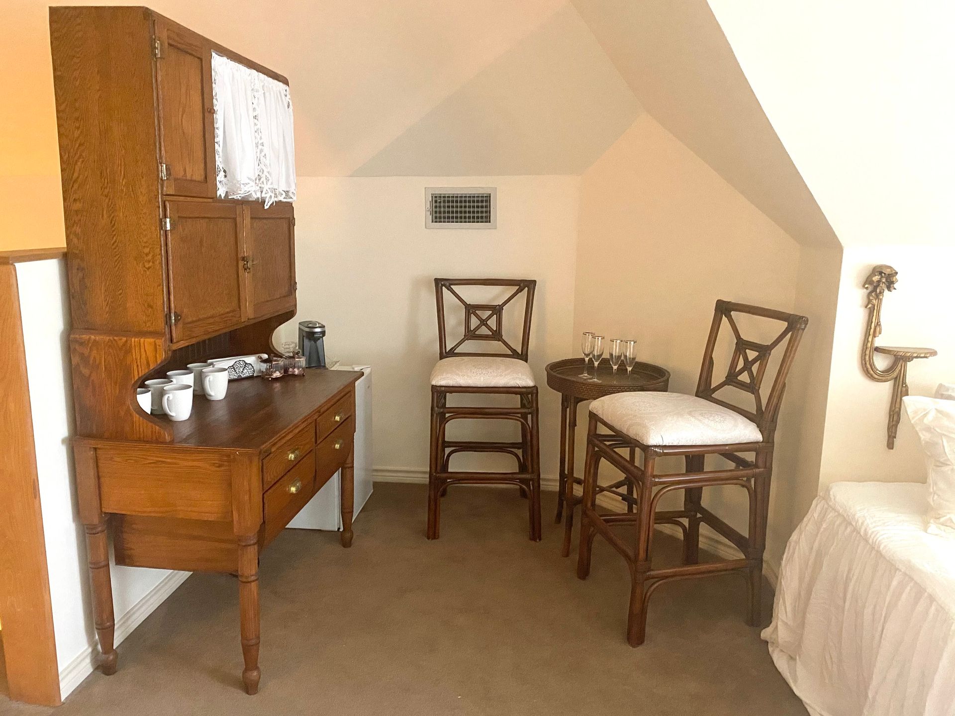 Escape to our spacious and serene bridal suite, perfect for preparing for your special event or a relaxing getaway. Located on the third floor, this suite offers a unique perspective of Bonham, Texas. Enjoy comfortable accommodations with a queen bed and two trundle beds, accommodating up to six guests. While the stairs are steep, the suite's snack bar ensures you have everything you need for a comfortable stay.